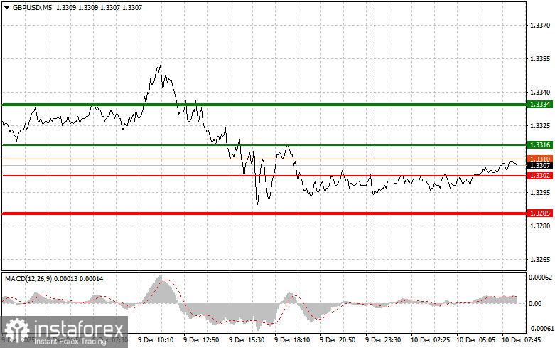 Сценарий №2: покупать фунт сегодня также планирую в случае двух подряд тестов цены 1.3302 в момент, когда индикатор MACD будет находиться в области перепроданности. Это ограничит нисходящий потенциал пары и приведет к обратному развороту рынка вверх. Можно ожидать рост к противоположным уровням 1.3316 и 1.3334.