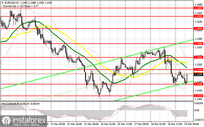 EUR/USD: план на американскую сессию 19 марта. Покупатели проявили себя в районе 1.1448