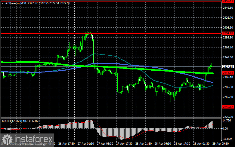Что касается технической картины Ethereum, то очевидное закрепление выше уровня в $2394 открывает прямую дорогу на $2459. Самой дальней целью выступит максимум в районе $2575, преодоление которого будет означать укрепление бычьих настроений рынка и возврат интереса покупателей. В случае падения эфира покупателей жду на уровне $2314. Возврат торгового инструмента под эту область может быстро свалить ETH в район $2245. Самой дальней целью будет область $2162.