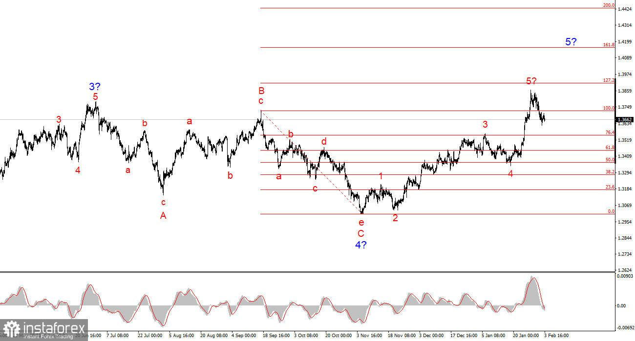 Волновая картина инструмента GBP/USD имеет вполне понятный вид. Пятиволновая повышательная структура завершила свое построение, но глобальная волна 5 может принять гораздо более протяженный вид. Я считаю, что в ближайшее время может наблюдаться построение коррекционного набора волн, после чего возобновиться построение восходящего тренда. Следовательно, в ближайшие недели я могу посоветовать искать возможности для новых покупок. На мой взгляд, при Дональде Трампе фунт стерлингов имеет все шансы стоить 1,45-1,50$. Сам Трамп приветствует снижение курса доллара. Все его действия имеют двойной позитивный эффект: снижение доллара и решение внутренних, внешних, торговых и геополитических вопросов.