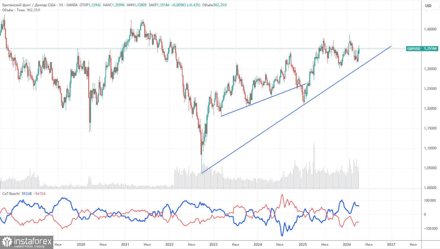 На часовом таймфрейме пара GBP/USD продолжает формирование восходящей тенденции, которая может быть отменена, если на Ближнем Востоке возобновится полноценная война. Отметим также, что влияние геополитики ослабевает, судя по движениям на этой неделе, однако и военные действия в регионе пока поставлены на паузу. Ормузский пролив остается заблокированным, прогресса в переговорах нет. Назревает коррекция.