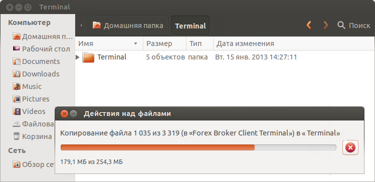 Another way to start using the trading terminal in Ubuntu is copying the entire folder of the client terminal previously installed on Microsoft Windows: